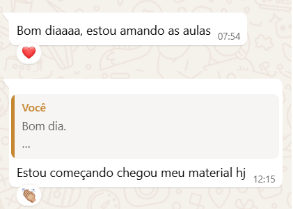 Você terá acesso ao grupo exclusivo no WhatsApp, onde poderá tirar dúvidas diretamente com a professora e interagir com outras alunas. É a melhor forma de aprender de forma rápida e sem obstáculos.